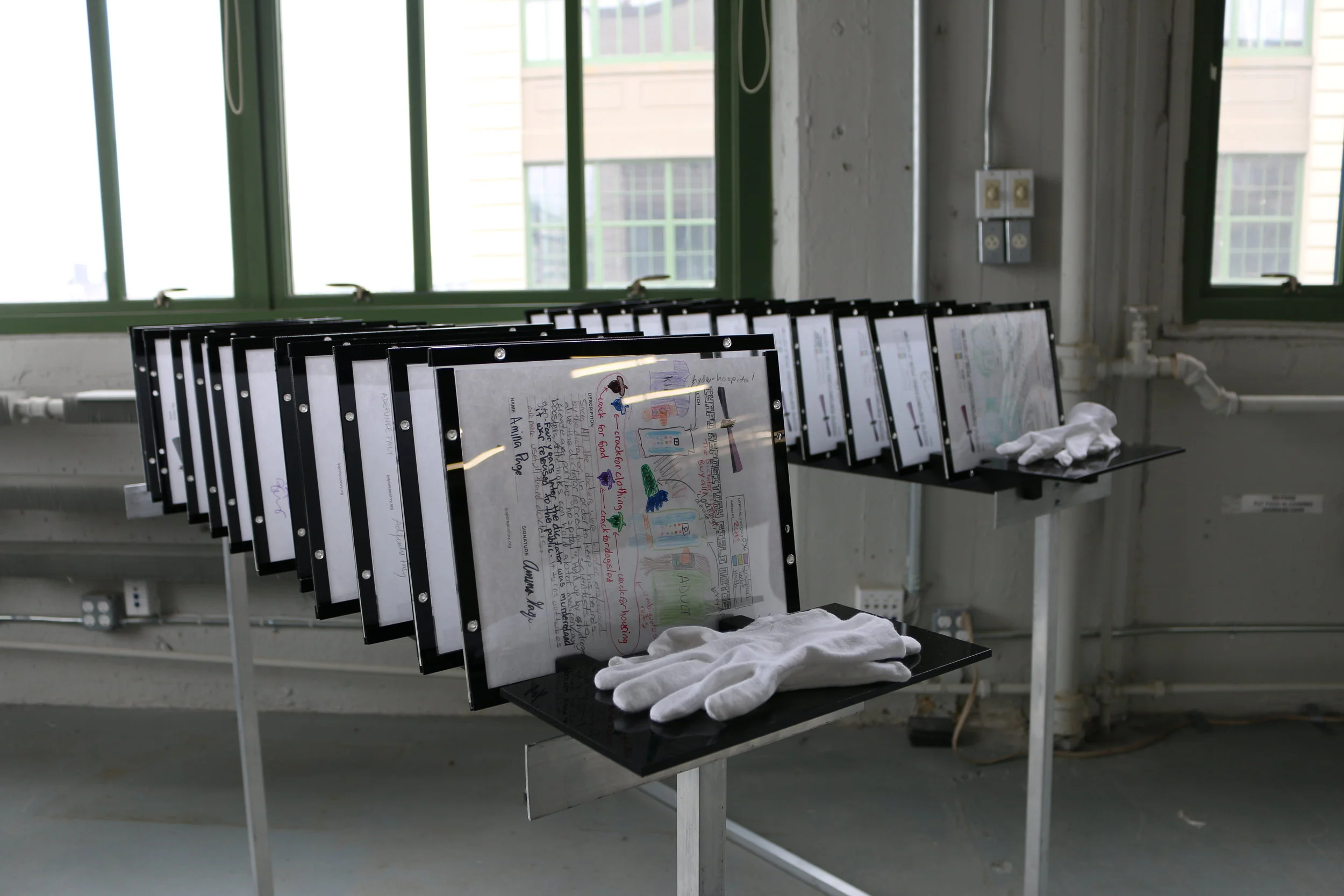 25 manuscripts, aluminum, acrylic, wood